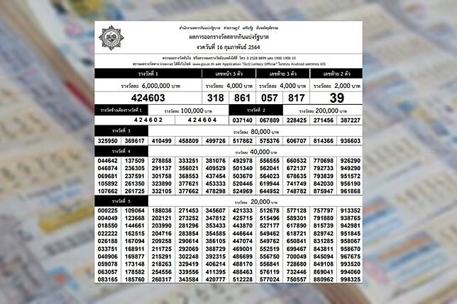 ตรวจสลากกินแบ่งรัฐบาล ตรวจหวย ตรวจลอตเตอรี่ หวยออกงวดวันที่ 16 มีนาคม 2564 ผลสลาก ตรวจลอตเตอรี่ ผลสลาก กินแบ่งรัฐบาล สลากกินแบ่งรัฐบาล ตรวจสลาก lottery อัพเดทรวดเร็วที่ sanook.com